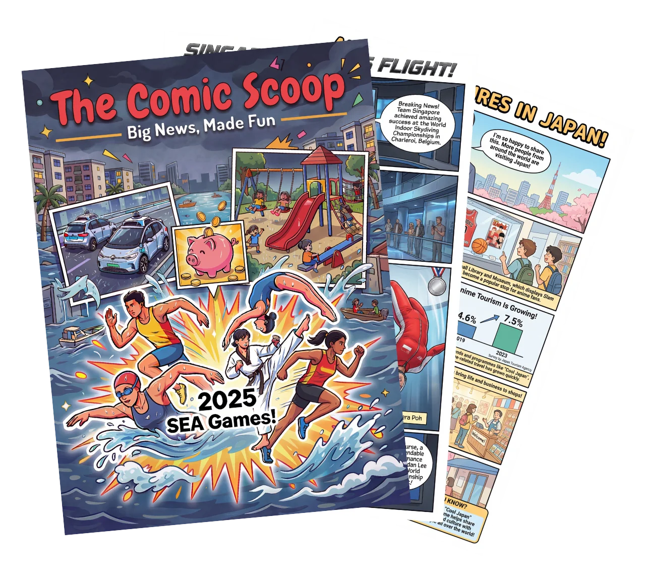 We cover Singapore current affairs, regional news, and global events, all filtered for age-appropriateness. Recent examples include Budget announcements, environmental initiatives, and world events that matter to kids.